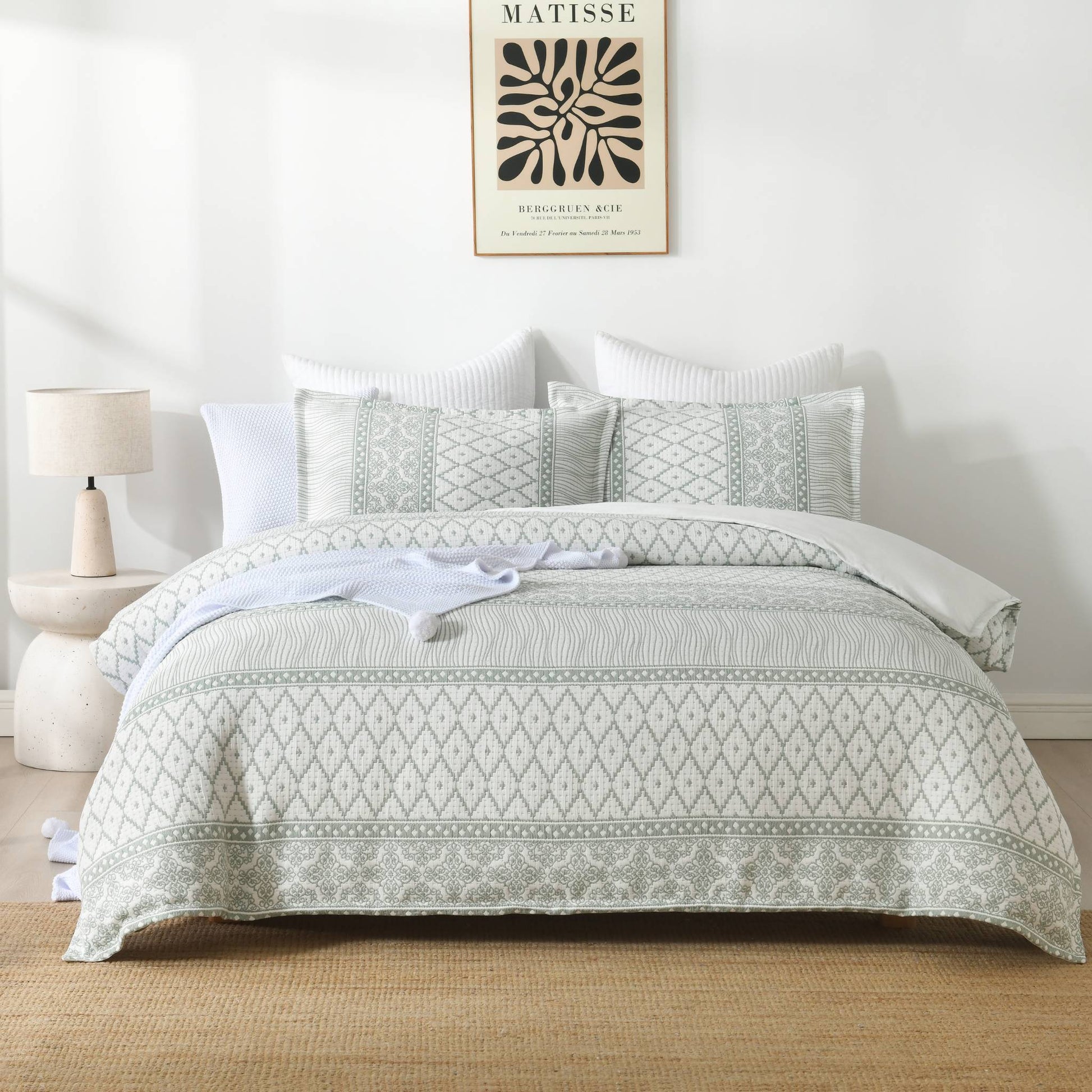 - Tailored edges on quilt cover and pillowcases for a refined finish